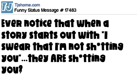 X is ever notice that when a story starts out with "I swear that I'm not sh*tting you"...they ARE sh*tting you?