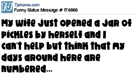 - # 164455 My wife just opened a jar of pickles by herself and I can't help but believe my days around here are numbered...