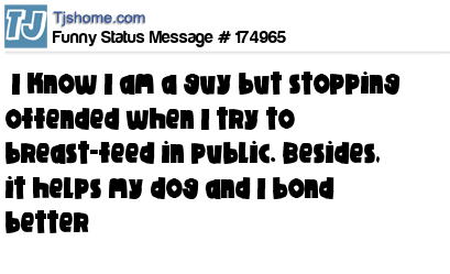 X says I know I am a guy but stopping offended when I try to breast-feed in public. Besides, it helps my dog and I bond better
