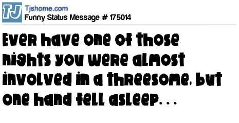 X says Ever have one of those nights you were almost involved in a threesome, but one hand fell asleep. . .