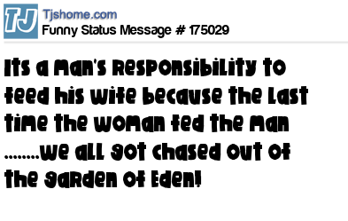 X says Its a man's responsibility to feed his wife because the last time the woman fed the man ........we all got chased out of the garden of Eden!