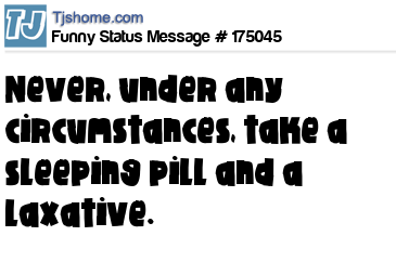 - # 27113 never, ever, ever under any circumstances take a laxative and sleeping pill on the same night