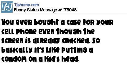 - # 165652 Why would you buy a case for your cracked cell phone, that's like buying a condom to put on your kids head?!?!