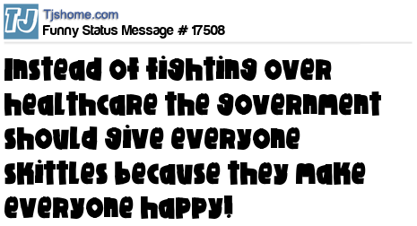 X says instead of fighting over healthcare the government should give everyone skittles because they make everyone happy!