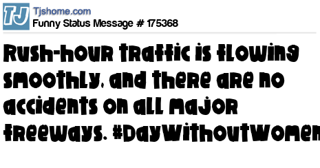 X is Rush-hour traffic is flowing smoothly, and there are no accidents on all major freeways. #DayWithoutWomen