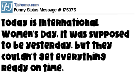 X says Today is International Women's Day, It was supposed to be yesterday, but they couldn't get everything ready on time.