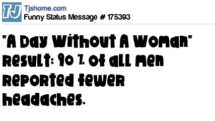 X "A Day Without A Woman" result: 90 % of all men reported fewer headaches.