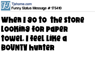 X says when I go to the store looking for paper towel, I feel like a BOUNTY hunter