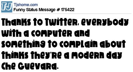 X says Thanks to Twitter, everybody with a computer and something to complain about thinks they're a modern day Che Guevara.