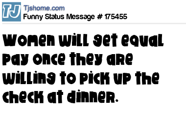 X says Women will get equal pay once they are willing to pick up the check at dinner.