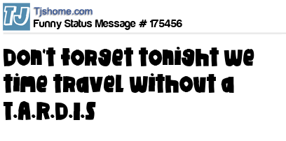 - # 78386 Time travel ..0ne hr back in time tonight..i wonder how different every thing will be.