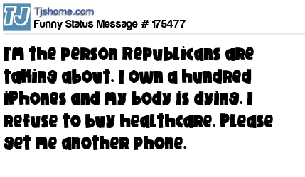 X says I'm the person Republicans are taking about. I own a hundred iPhones and my body is dying. I refuse to buy healthcare. Please get me another phone.