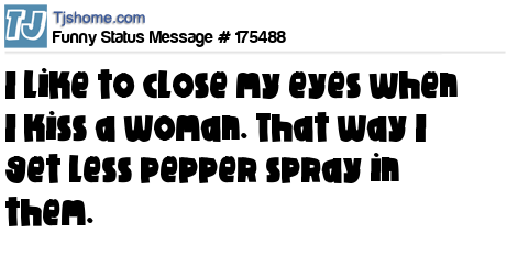 - # 164438 When I go in to kiss a girl, I always close my eyes. Ive just learned from experience, if my eyes are open, more pepper spray gets in them.