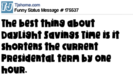 X says The best thing about Daylight Savings Time is it shortens the current Presidental term by one hour.