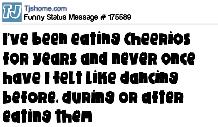 X says I've been eating Cheerios for years and never once have I felt like dancing before, during or after eating them