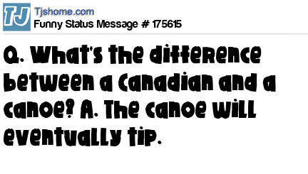 X  Q. What's the difference between a Canadian and a canoe? A. The canoe will eventually tip.