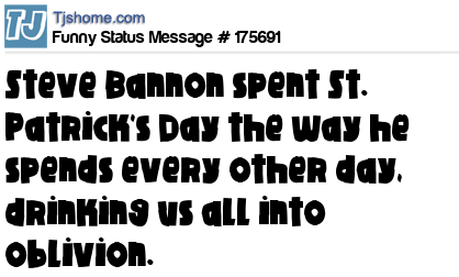 X says Steve Bannon spent St. Patrick's Day the way he spends every other day, drinking us all into oblivion.