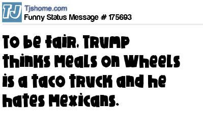 X says To be fair, Trump thinks Meals on Wheels is a taco truck and he hates Mexicans.