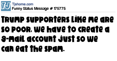 X is Trump supporters like me are so poor, we have to create a g-mail account just so we can eat the spam.