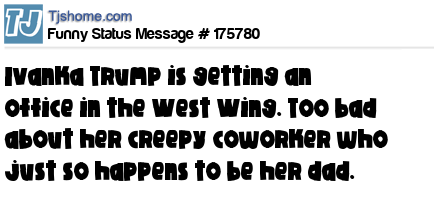 X says Ivanka Trump is getting an office in the West Wing. Too bad about her creepy coworker who just so happens to be her dad.