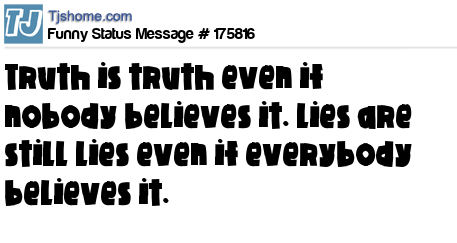 X says Truth is truth even if nobody believes it. Lies are still lies even if everybody believes it.