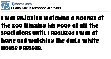 X says I was enjoying watching a monkey at the zoo flinging his poop at all the spectators until I realized I was at home and watching the daily White House presser.
