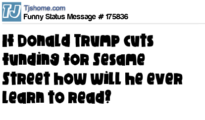 X says If Donald Trump cuts funding for Sesame Street how will he ever learn to read?