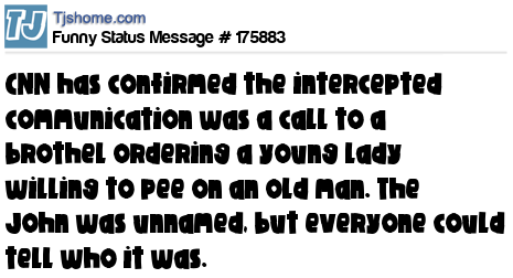 X says CNN has confirmed the intercepted communication was a call to a brothel ordering a young lady willing to pee on an old man. The John was unnamed, but everyone could tell who it was.