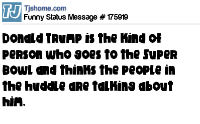 X says Donald Trump is the kind of person who goes to the Super Bowl and thinks the people in the huddle are talking about him.