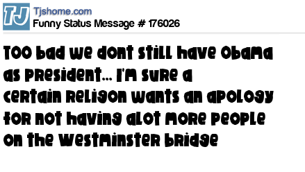 X says TOO bad we dont still have Obama as president... I'm sure a certain religon wants an apology for not having alot more people on the Westminster bridge