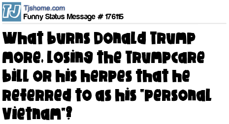 X says What burns Donald Trump more, losing the Trumpcare bill or his herpes that he referred to as his "personal Vietnam"?