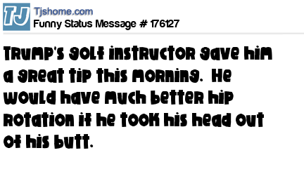 X says Trump's golf instructor gave him a great tip this morning. He would have much better hip rotation if he took his head out of his butt.