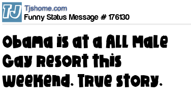 X says Obama is at a All Male Gay resort this weekend. True story.