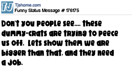 X says Don't you people see.... these dummy-crats are trying to peece us off. Lets show them we are bigger than that, and they need a job.