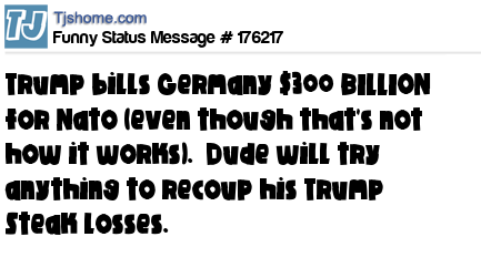 X says Trump bills Germany $300 BILLION for Nato (even though that's not how it works). Dude will try anything to recoup his Trump Steak losses.