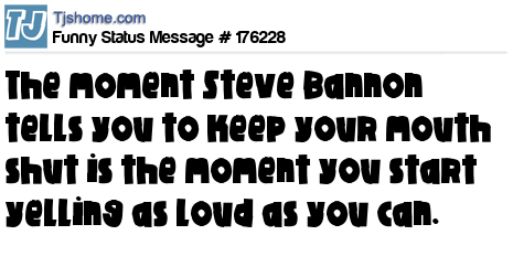 X says The moment Steve Bannon tells you to keep your mouth shut is the moment you start yelling as loud as you can.