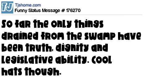 X says So far the only things drained from the swamp have been truth, dignity and legislative ability. Cool hats though.