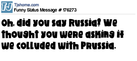X says Oh, did you say Russia? We thought you were asking if we colluded with Prussia.