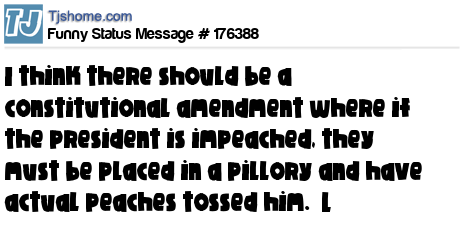 X says I think there should be a constitutional amendment where if the president is impeached, they must be placed in a pillory and have actual peaches tossed him. L