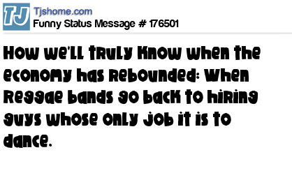 X How we'll truly know when the economy has rebounded: When Reggae bands go back to hiring guys whose only job it is to dance.