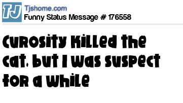 - # 43976 I am so happy to hear that curiousity killed the cat. For a while, I was the only suspect..