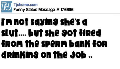X says I'm not saying she's a slut.... but she got fired from the sperm bank for drinking on the job ..