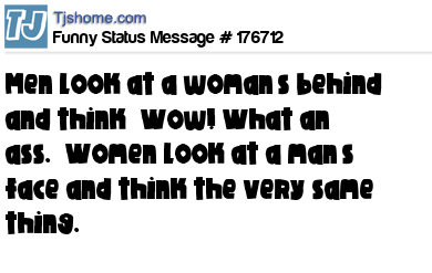 - # 157694 Men look at a woman’s behind and think “Wow! What an @zz.” Women look at a man’s face and think the very same thing.
