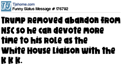 X says Trump removed abandon from NSC so he can devote more time to his role as the White House liaison with the K K K.