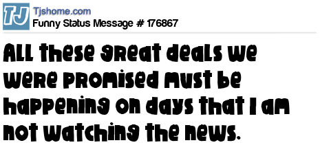 X says All these great deals we were promised must be happening on days that I am not watching the news.