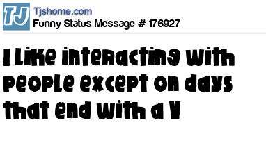 X says i like interacting with people except on days that end with a Y