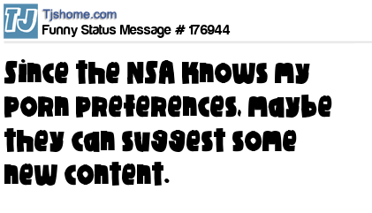 X is Since the NSA knows my porn preferences, maybe they can suggest some new content.