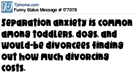 X says Separation anxiety is common among toddlers, dogs, and would-be divorcees finding out how much divorcing costs.