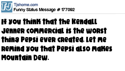 X is If you think that the Kendall Jenner commercial is the worst thing Pepsi ever created, let me remind you that Pepsi also makes Mountain Dew.