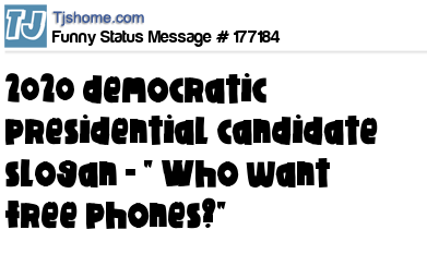 X says 2020 democratic presidential candidate slogan - " Who want free phones?"